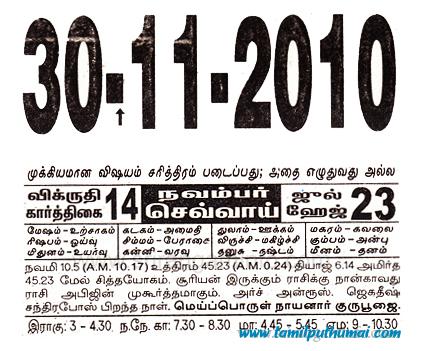 தமிழ் நாட்காட்டி 2010-11-30 செவ்வாய்க் கிழமை
