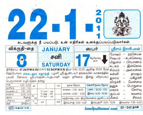 தமிழ் நாட்காட்டி 2011-01-22 சனிக் கிழமை