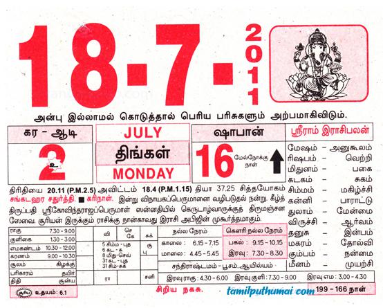 தமிழ் நாட்காட்டி 2011-07-18 திங்கட் கிழமை