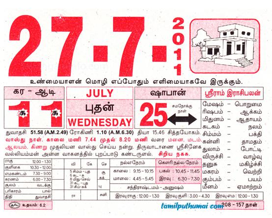 தமிழ் நாட்காட்டி 2011-07-27 புதன் கிழமை