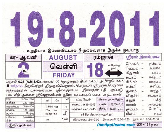 தமிழ் நாட்காட்டி 2011-08-19 வெள்ளிக்கிழமை