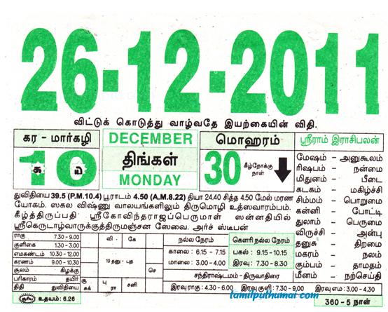 - tamil daily calendar 2011-12-26