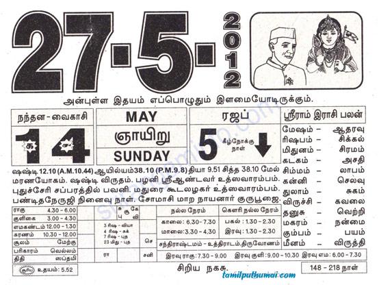 தமிழ் நாட்காட்டி 2012-05-27 ஞாயிற்றுக் கிழமை