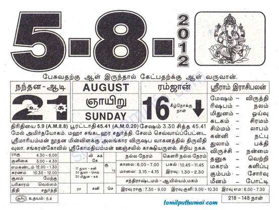 தமிழ் நாட்காட்டி 2012-08-05 ஞாயிற்றுக் கிழமை