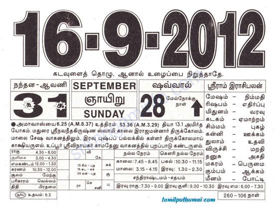 தமிழ் நாட்காட்டி 2012-09-16 ஞாயிற்றுக் கிழமை