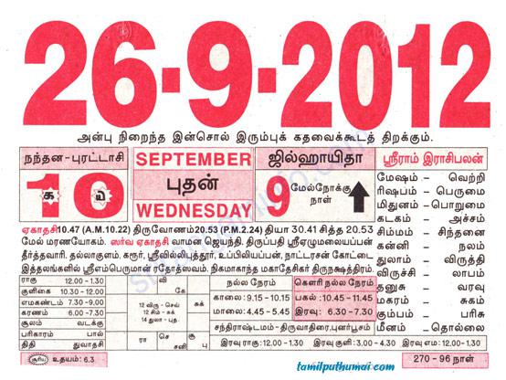 தமிழ் நாட்காட்டி 2012-09-26 புதன் கிழமை
