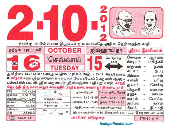 தமிழ் நாட்காட்டி 2012-10-02 செவ்வாய்க் கிழமை