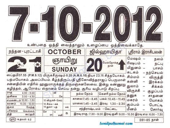 தமிழ் நாட்காட்டி 2012-10-07 ஞாயிற்றுக் கிழமை