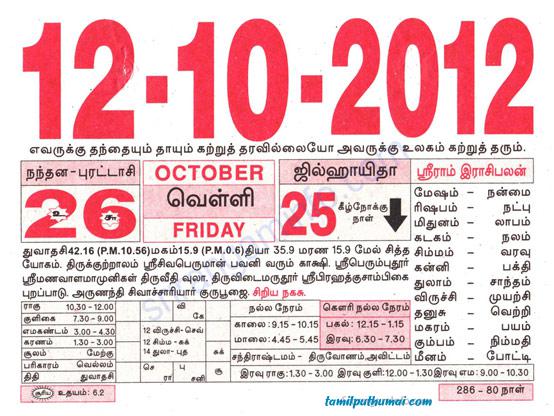 - tamil daily calendar 2012-10-12