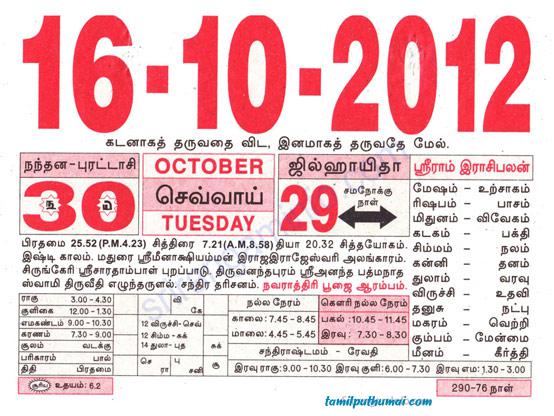 - tamil daily calendar 2012-10-16