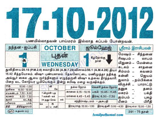 தமிழ் நாட்காட்டி 2012-10-17 புதன் கிழமை