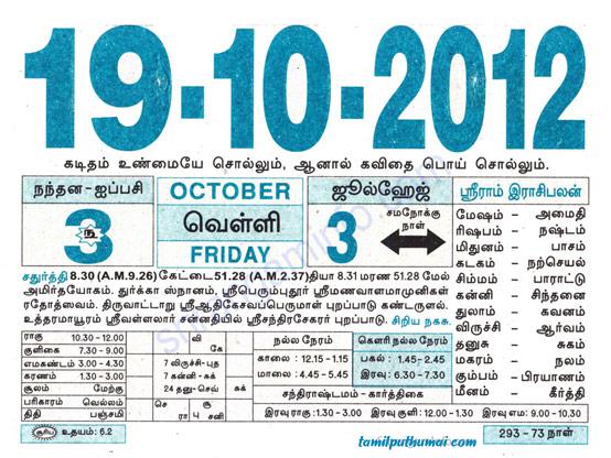 தமிழ் நாட்காட்டி 2012-10-19 வெள்ளிக்கிழமை