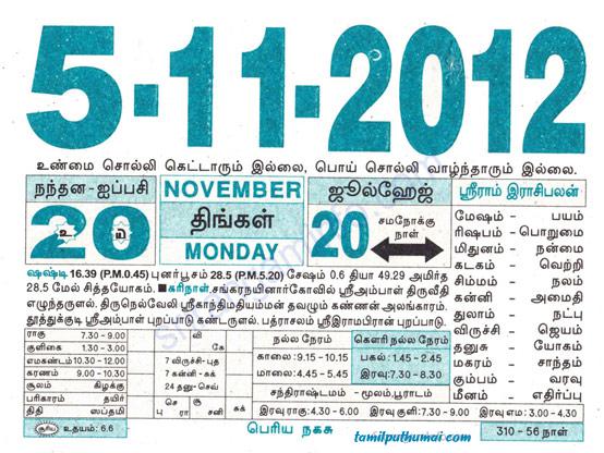 தமிழ் நாட்காட்டி 2012-11-05 திங்கட் கிழமை