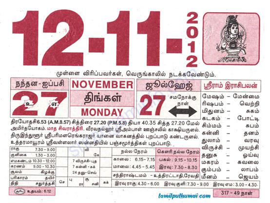 - tamil daily calendar 2012-11-12