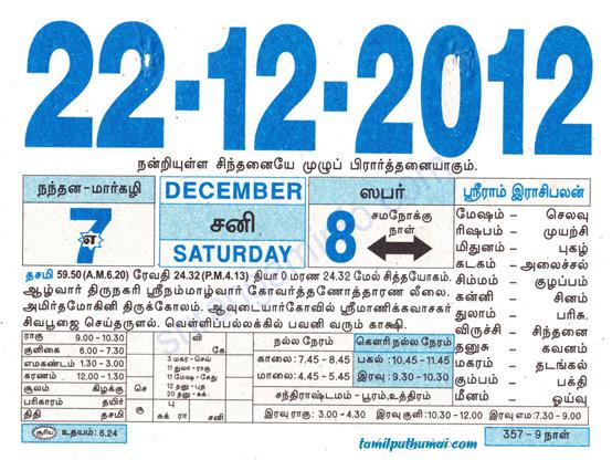 தமிழ் நாட்காட்டி 2012-12-22 சனிக் கிழமை