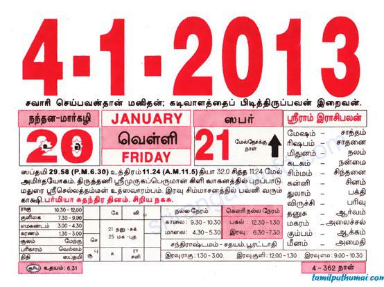 தமிழ் நாட்காட்டி 2013-01-04 வெள்ளிக்கிழமை