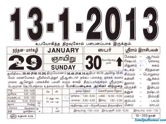 தமிழ் நாட்காட்டி 2013-01-13 ஞாயிற்றுக் கிழமை