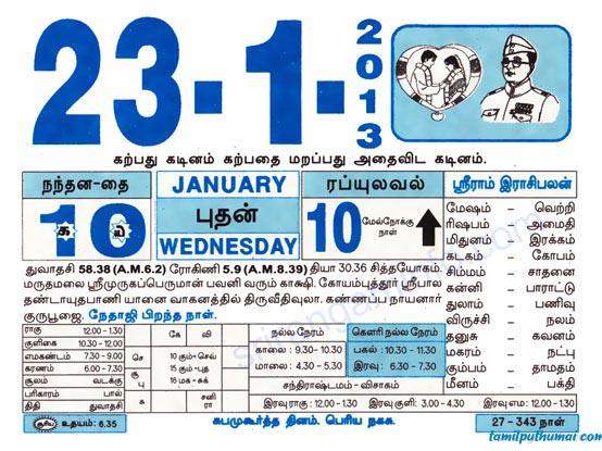 - tamil daily calendar 2013-01-23