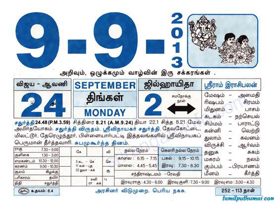 தமிழ் நாட்காட்டி 2013-09-09 திங்கட் கிழமை