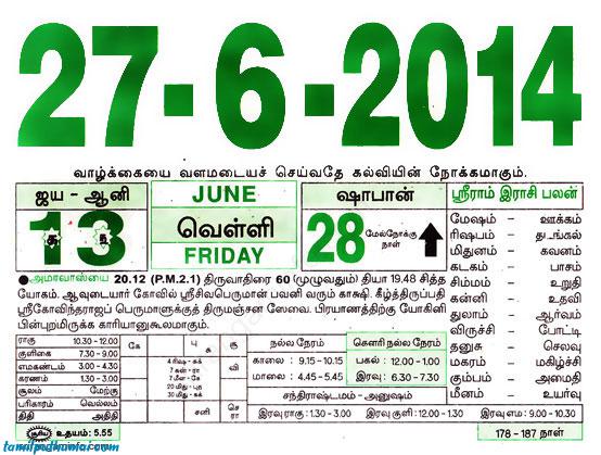 தமிழ் நாட்காட்டி 2014-06-27 வெள்ளிக்கிழமை