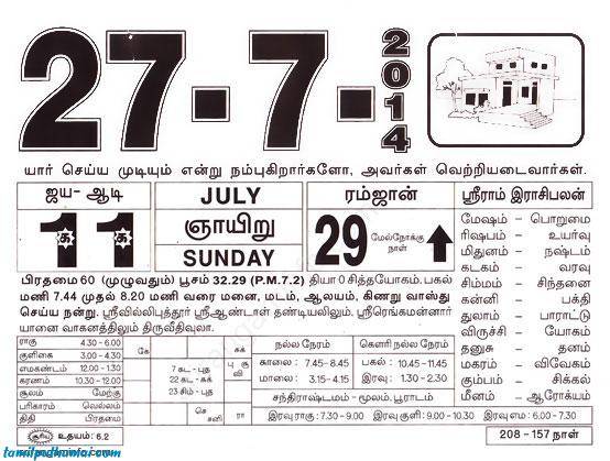 தமிழ் நாட்காட்டி 2014-07-27 ஞாயிற்றுக் கிழமை