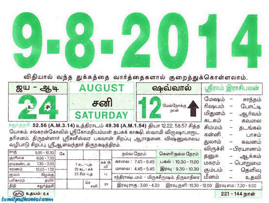 தமிழ் நாட்காட்டி 2014-08-09 சனிக் கிழமை