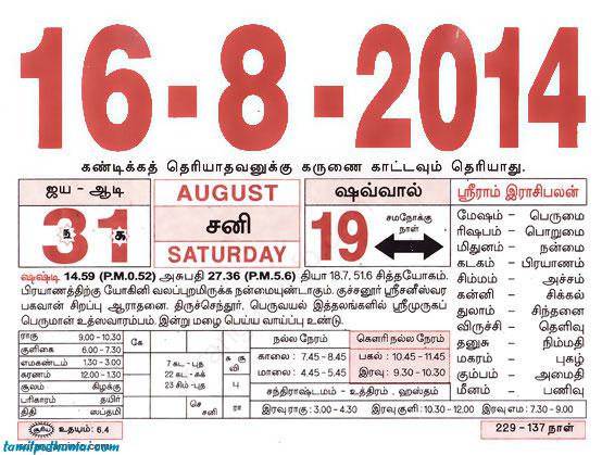 தமிழ் நாட்காட்டி 2014-08-16 சனிக் கிழமை
