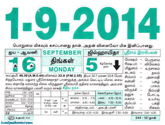 - tamil daily calendar 2014-09-01