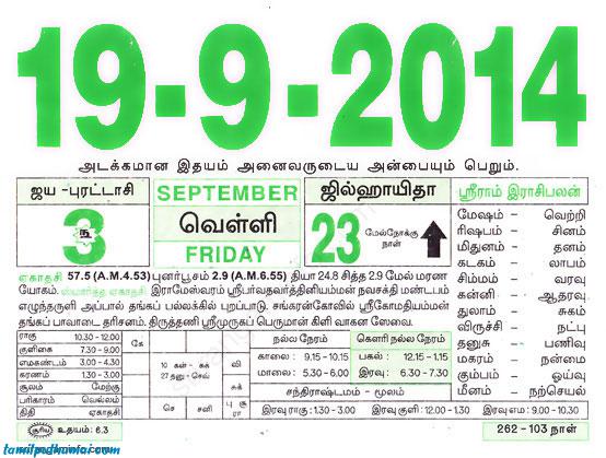 தமிழ் நாட்காட்டி 2014-09-19 வெள்ளிக்கிழமை