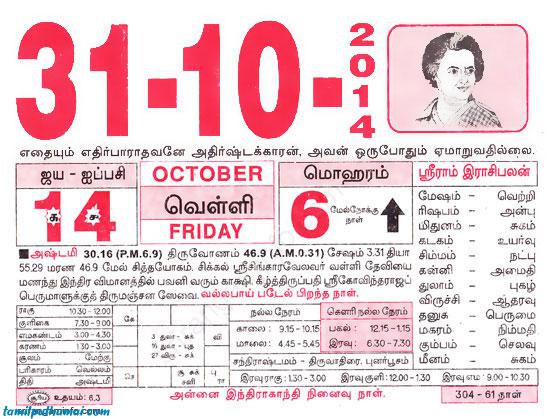 தமிழ் நாட்காட்டி 2014-10-31 வெள்ளிக்கிழமை