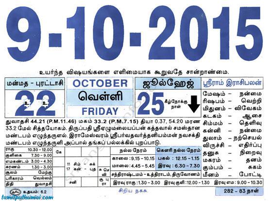 - tamil daily calendar 2015-10-09