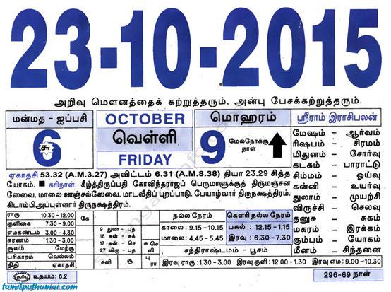 தமிழ் நாட்காட்டி 2015-10-23 வெள்ளிக்கிழமை