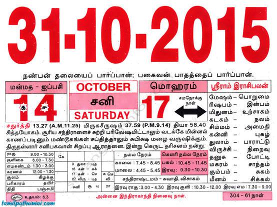 தமிழ் நாட்காட்டி 2015-10-31 சனிக் கிழமை