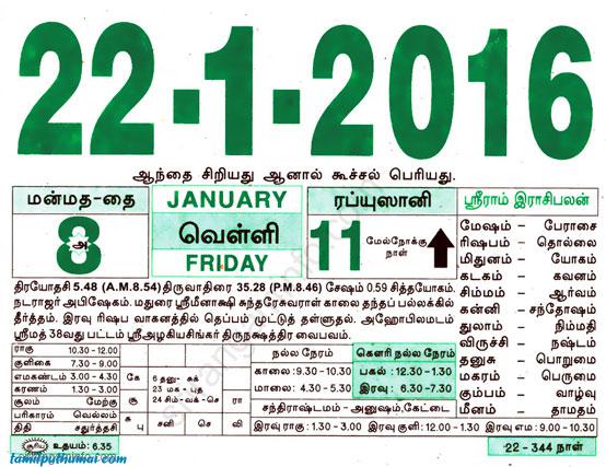 - tamil daily calendar 2016-01-22