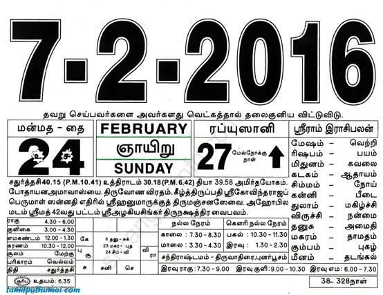 - tamil daily calendar 2016-02-07