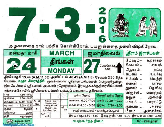 தமிழ் நாட்காட்டி 2016-03-07 திங்கட் கிழமை