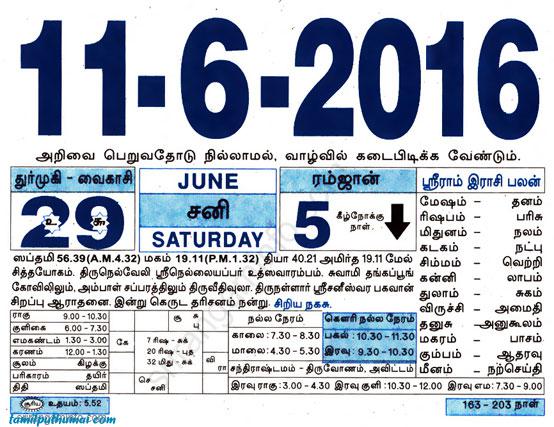 தமிழ் நாட்காட்டி 2016-06-11 சனிக் கிழமை