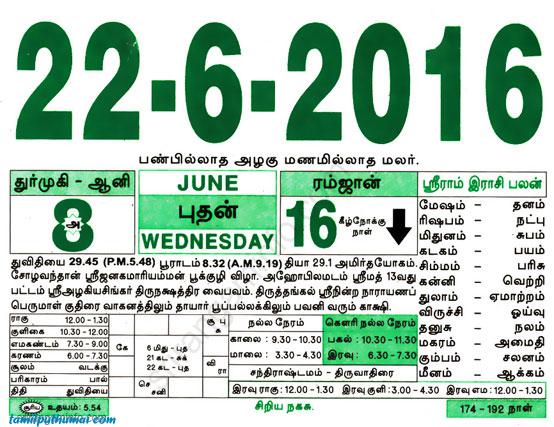 தமிழ் நாட்காட்டி 2016-06-22 புதன் கிழமை