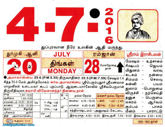 - tamil daily calendar 2016-07-04