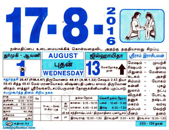 - tamil daily calendar 2016-08-17