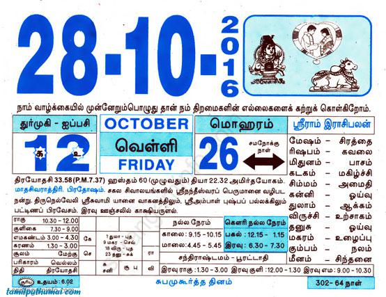 தமிழ் நாட்காட்டி 2016-10-28 வெள்ளிக்கிழமை