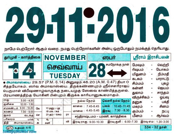 தமிழ் நாட்காட்டி 2016-11-29 செவ்வாய்க் கிழமை