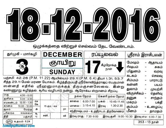 தமிழ் நாட்காட்டி 2016-12-18 ஞாயிற்றுக் கிழமை