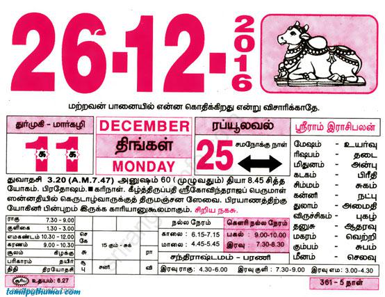 - tamil daily calendar 2016-12-26