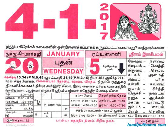 - tamil daily calendar 2017-01-04