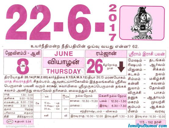 - tamil daily calendar 2017-06-22