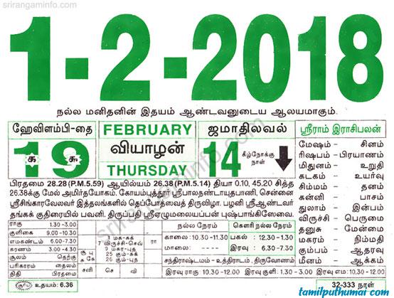 தமிழ் நாட்காட்டி 2018-02-01 வியாழக் கிழமை