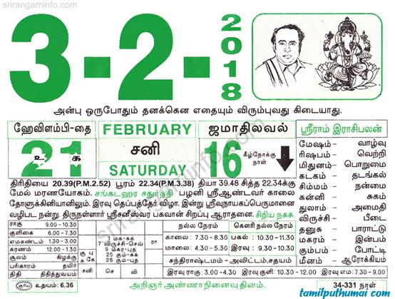 தமிழ் நாட்காட்டி 2018-02-03 சனிக் கிழமை