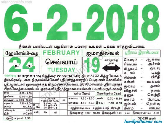 - tamil daily calendar 2018-02-06