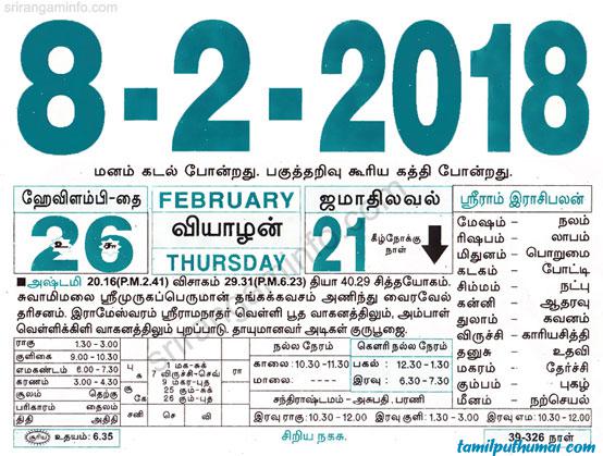 தமிழ் நாட்காட்டி 2018-02-08 வியாழக் கிழமை